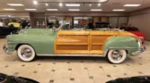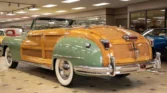 Classic beauty featuring a 323 C.I. 135hp Spitfire Straight-8 engine and 4-speed Fluid Drive transmission. Highlights include a beige power convertible top, custom wood and chrome work, dual Mopar spotlights, wide whitewall tires, and an AM radio. This timeless convertible also boasts push-button start and a carpeted trunk with spare tire. Contact us today to learn more!