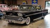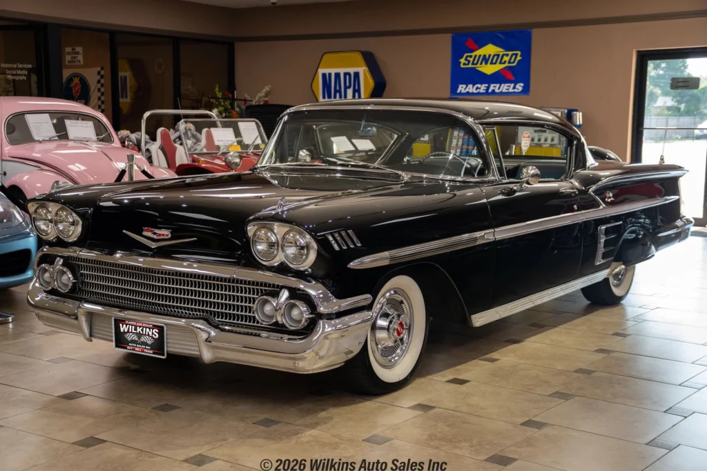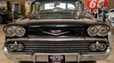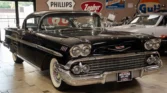 Offering a beautifully restored car with only 1,400 miles since restoration. It features a correct 348 C.I. Big Block Tri-Power V8, upgraded 700R4 transmission, power steering and brakes, continental kit, fender skirts, dual antennas, and spinner hubcaps. Stunning chrome work and a unique black, silver, and light blue interior complete this Onyx Black classic. Contact us today for more info!