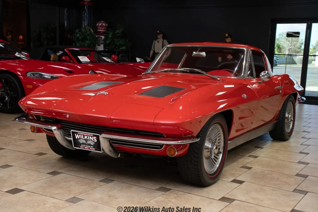 Offering a desirable high-horsepower one-year-only Split Window Corvette. It features a 340hp 327 C.I. L76 V8, Borg-Warner T-10 4-speed transmission, and 3.70 posi rear differential. Highlights include Winters aluminum intake, dual exhaust, power windows, finned valve covers, aluminum knock-off turbine wheels, and red line tires. Finished in iconic Riverside Red with red vinyl interior. A must-have for serious Corvette collectors. Contact us today!