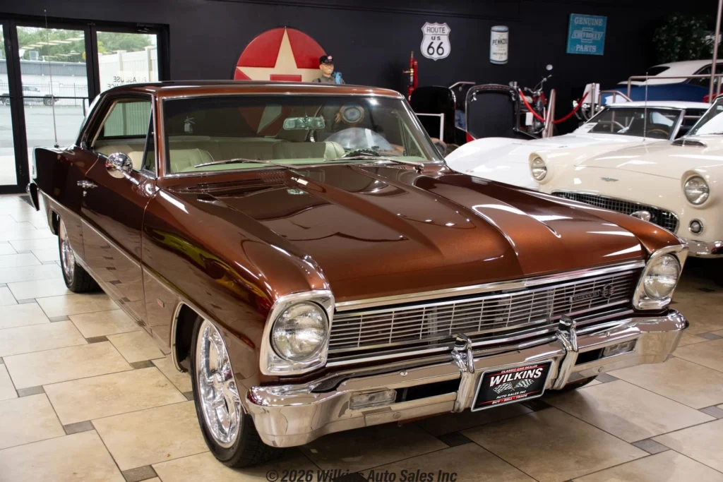 Offering a powerful 5.7L LS6 V8 with Tremec 6-speed manual transmission and Ford 9″ rear axle. This custom build features adjustable coilovers, Wilwood disc brakes, BeCool aluminum radiator, air conditioning, and Hurst shifter. It shines with Billet Specialties Velocity wheels, Nitto tires, shimmering chrome, and a custom cream interior with billet steering wheel, center console, and gauges. Finished in stunning Root Beer Pearl. Contact us today!